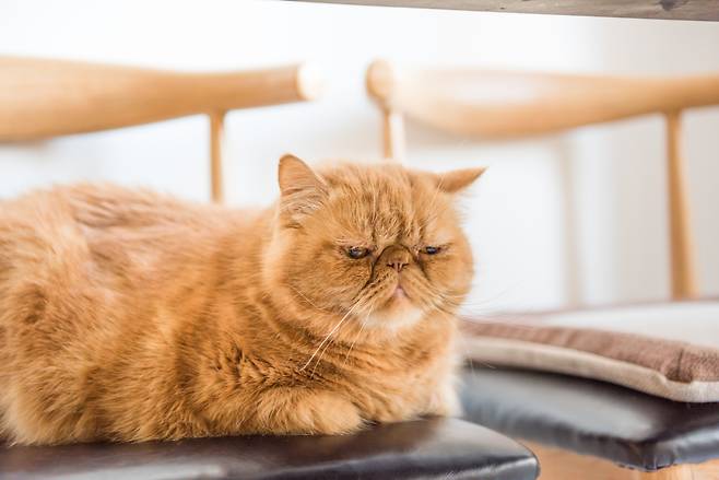 엑조틱은 욕심 많고 장난꾸러기 같은 가필드와 달리 얌전하고, 차분한 편인데요. 외국에선 엑조틱 고양이가 애교가 많고, 털을 자주 빗길 필요도 없어 '게으른 사람들을 위한 고양이'라 부를 정도라고 합니다.
