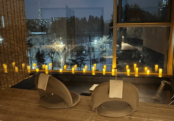 족욕 공간은 통창으로 되어 있어 서울 도심의 풍경을 감상하며 아늑한 분위기를 즐길 수 있습니다. 특히, 2면이 통창으로 된 좌측 방은 넓은 시야를 제공해 특별한 경험을 선사하는데요. 족욕을 시작하기 전, 허브 5종과 소금 1종 중 원하는 입욕제를 선택할 수 있으며, 추가 요금을 내면 더 풍성한 족욕을 즐길 수 있습니다.