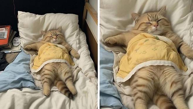 고양이에게 덮어줬더니 너무 작아졌는데요 ㅎㅎ