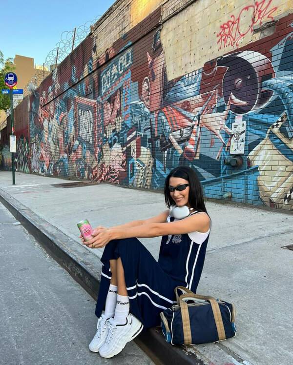 Y2K 패션의 정석을 보여주고 있는 벨라하디드. 그녀는 스포티한 무드의 스트라이프 원피스에 로고 삭스와 스니커즈를 매치해 스포티한 감성을 불어넣었다. 여기에 날렵한 셰이프의 선글라스와 헤드셋을 목에 걸어 쿨한 연출법을 제시했다. 편안하면서 캐주얼한 헤드셋 스타일링에 도전하고 싶다면, 벨라하디드의 스타일링을 눈여겨볼 것.