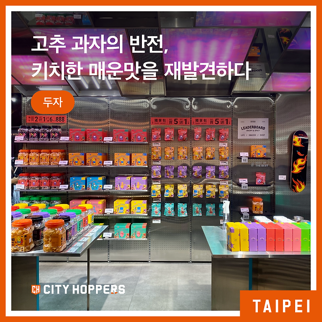 오로지 고추만을 주인공으로 내세웠는데 한 해 매출은 1억위안(약 45억원)을 기록할 정도예요. 개성 강한 오프라인 매장을 잇달아 내며 2030세대와 연결고리를 구축하는 것을 넘어 이제는 콘텐츠 기업으로까지 한걸음 내딛었어요. 전통적이고 향토적이기까지 한 고추로 이렇게까지 할 수 있나 싶은데, 정말 ‘이렇게까지’ 트렌디한 일을 하나하나 벌리고 있는 독특한 식료품점. 대만을 빨갛게 물들이고 있는 두자의 세계로 들어가 볼게요.