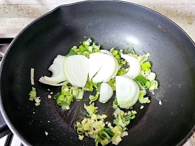양파, 대파, 고추는 먹기 좋게 썰고마늘은 편으로 썰어요