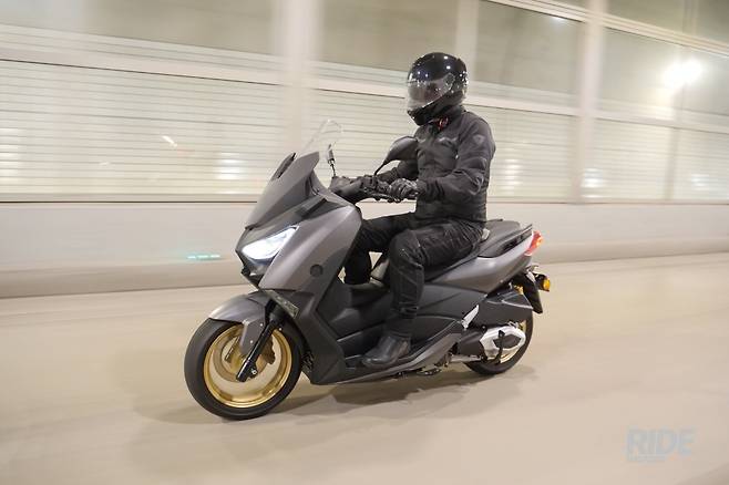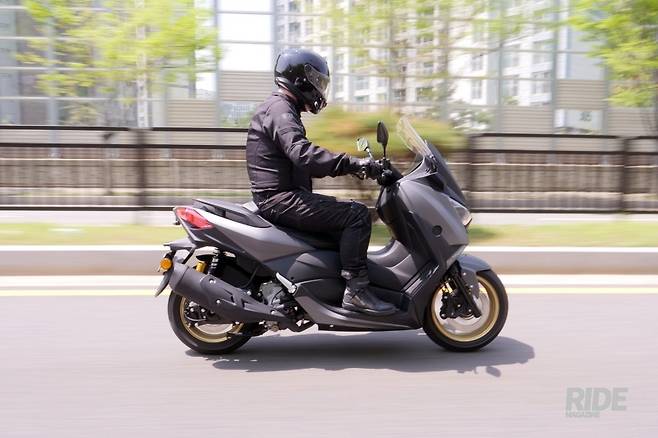 시동을 켜고 스로틀을 당기면 생각보다 민첩하게 반응하는 것을 볼 수가 있는데 쿼터급 스쿠터를 타는 사람들은 아마도 동의하겠지만 이 정도 배기량에 이 정도 출력이라면 시내에서는 충분하다는 느낌을 받는다. 125cc 배기량의 모터사이클을 탈 때 느껴지는 그 조금의 아쉬움이 채워지는 느낌이랄까. 특히나 신호 대기하다가 출발했을 때 뒤로 아득히 멀어지는 125cc 스쿠터들을 사이드미러로 보고 있으면 뭔지 모를 기분 좋음이 느껴진다.