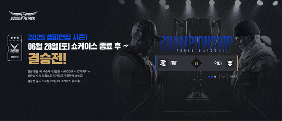 ㈜넥슨(공동 대표 강대현∙김정욱)은 자사 인기 온라인 FPS 게임 '서든어택' 공식 e스포츠 대회 '2025 서든어택 챔피언십 시즌1'의 결승전 및 디렉터 라이브 쇼케이스를 28일 진행한다고 밝혔다.