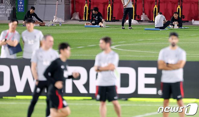 (도하(카타르)=뉴스1) 이동해 기자 = 파울루 벤투 감독이 이끄는 대한민국 축구대표팀의 손흥민 등이 25일 오후(현지시간) 카타르 도하 알에글라 트레이닝센터에서 회복훈련을 하고 있다. 2022.11.25/뉴스1