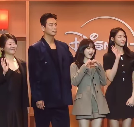 디즈니 플러스 오리지널 시리즈 '조명가게' 제작 발표회에 참석한 주인공들. 다들 블랙 컬러로 드레스코드를 맞췄지만 박보영은 밝은 브라운 컬러의 울자켓 울쇼츠 셋업으로 누가 봐도 여주인공의 면모를 드러냈다.