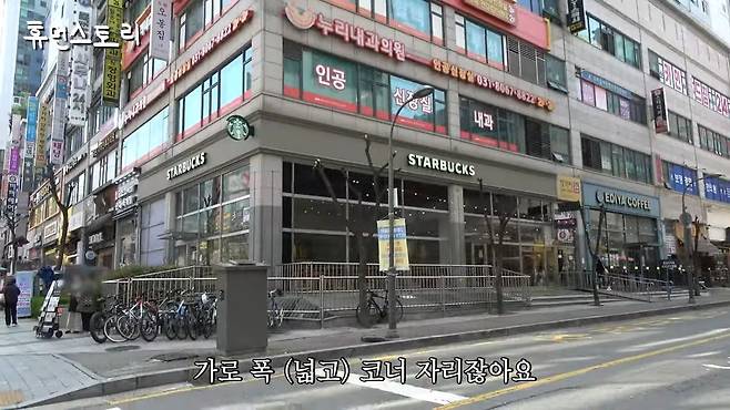 상권 조사도 직접 하는 편인데, 저희 직원들도 같이 하지만 제가 계속 체크합니다. 보시면 완미족발, 용용선생, 모자족발 같은 곳들이 저녁 상권에 있잖아요. 제가 아, 저기서 했었어야 되는데 하면서 좋은 자리를 봅니다. 예를 들어 국민은행 옆, 횡단보도 바로 앞 같은 곳이죠. 이런 횡단보도 앞자리가 원래 비싸요. 통신사 매장들이 다 횡단보도 앞에 있죠. 좋은 자리는 보통 가로 폭이 넓고, 사각지대에 있는 코너 자리가 최고입니다. 스타벅스도 보면 가로 폭넓고 코너 자리잖아요.