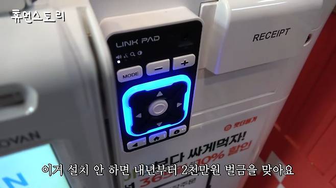 손님이 키오스크를 많이 쓰는데, 장애인 분들이 사용하실 수 있는 키패드가 있어요. 이거 설치 안 하면 내년부터 2천만 원 벌금을 맞습니다. 이제 필수가 됐어요.