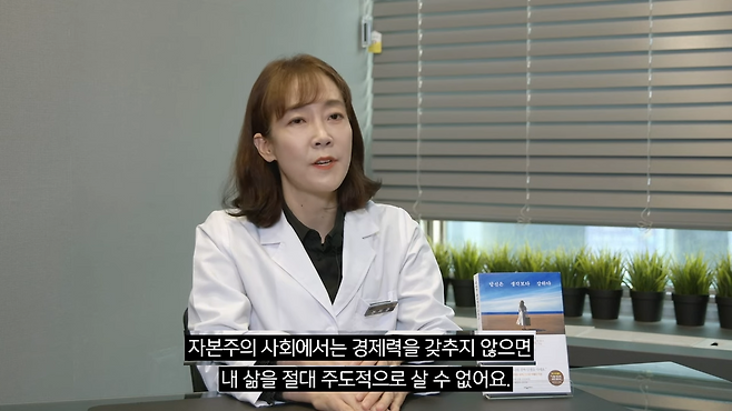 자본주의 사회에서는 내 삶을 절대 주도적으로 살 수 없어요. 쉽게 말해서 돈이 있어야 적성에 맞지 않는 직장을 그만두고 내 미래를 위해서 대학원을 다니든 자격증을 받든 할 수 있는 거구요. 돈이 있어야 복수든 자기 발전이든 뭐든 할 수 있는 거지요.