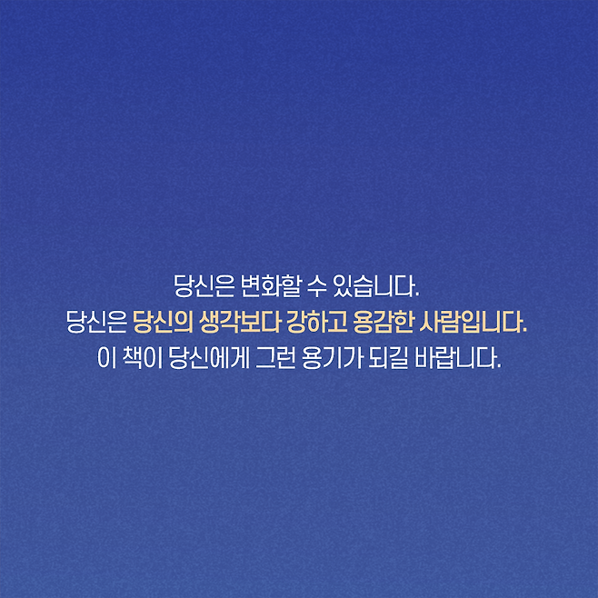 힘든 내 삶에 분명히 어떤 이유가 있고, 그 이유가 주로 과거의 트라우마와 나의 무능력 때문이라고 생각하시는 거죠. 하지만 우리는 충분히 이를 극복할 역량이 있습니다.