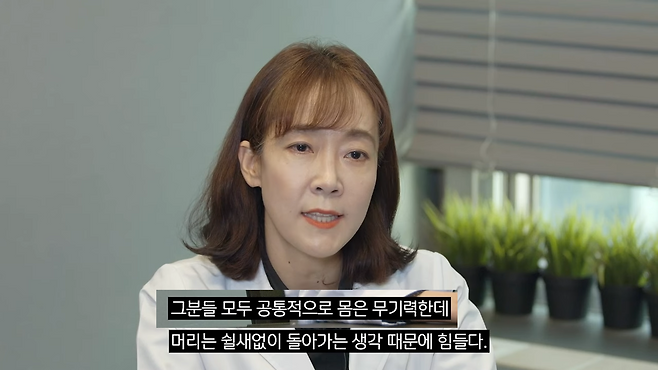 죽을 이유는 딱히 없지만 살 이유도 없다고 힘들어하는 분들도 많으시고요. 스스로가 얼마나 못난 사람인지 지속적으로 파고드는 분들도 많으십니다. 그분들 모두 공통적으로 몸은 무기력한데 머리는 쉴새없이 돌아가는 생각 때문에 힘들다고 하세요.