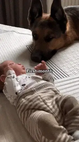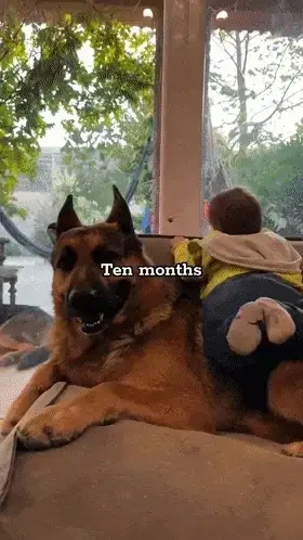 아기가 태어나 11개월이 될 때까지, 듬직한 대형견 독일 셰퍼드가 보여준 '육아 일기'를 함께 보실까요?