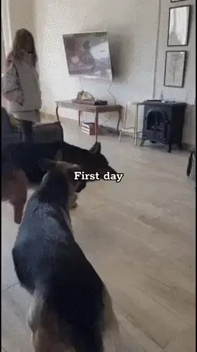 첫 주, 셰퍼드는 아기 곁을 떠나지 않고, 틈만 나면 아기를 쳐다봅니다.