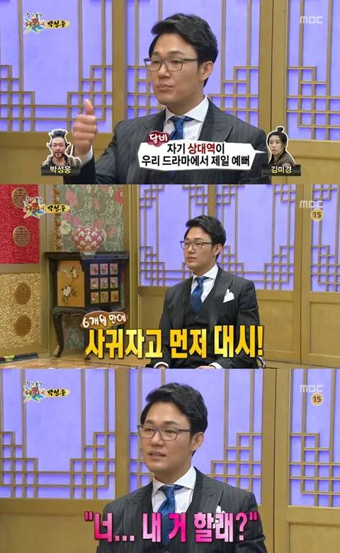도착한 박성웅은 스태프들 앞에서 너무 놀란 나머지 감독을 밀치며 신은정을 챙겼고, 그렇게 연애 사실이 발각된다.