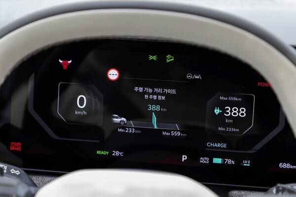 GT 라인 롱레인지인 시승차는 최고출력이 150kW인 전기모터를 탑재하고 있다. 마력으로 환산하면 204마력이라고 하지만, 공차중량이 제원상 1850kg이나 다양한 옵션을 탑재한 모델이라서 100kg이상은 더 무거울 테고 패밀리 소형 SUV인 점을 고려하면 굳이 더 빠른 가속 성능을 위해 전기모터의 출력을 높일 필요는 없을 듯하다. 최대토크는 283Nm다. 와인딩 구간에서 코너링은 배터리가 바닥에 깔려있어서 저중심이고, 초고장력강 강판과 핫 스탬핑 부품을 많이 사용해서 그런지 코너 진입만 정확하면 그 이후로는 안정적이고 깔끔하게 굽이진 길을 벗어날 수 있다. 빗길이라서 거세게 밀어붙일 수 없었으나 가속 성능보다 코너링 상황에서 민첩성이 돋보였다.
