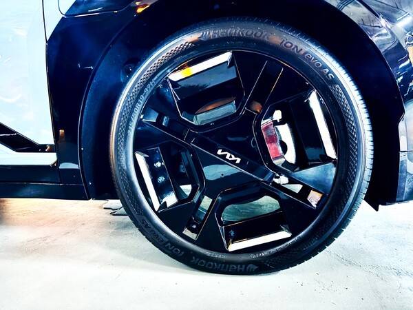 수평의 지붕 선과 A필러에서 D필러로 갈수록 좁아지는 벨트 라인은 역동적인 이미지를 부각한다. 짧은 앞·뒤 오버행과 블랙 컬러의 5각형 휠 아치 디자인, 크롬으로 힘을 준 사이드 가니시, 독특한 휠 디자인과 앞문의 플러시 도어 핸들은 독창적이고 인상적이다. 특히 앞·뒤 휠 아치 위쪽의 펜더를 삼각형 모양으로 철판을 접어 성형한 블리스터 디자인은 흘깃 쳐다보면 기아 EV9인가 싶을 정도로 닮았다. 기아 EV 브랜드의 선과 면을 넘나드는 기하학적 패밀리 룩 디자인은 독창적이고 미래지향적이다.