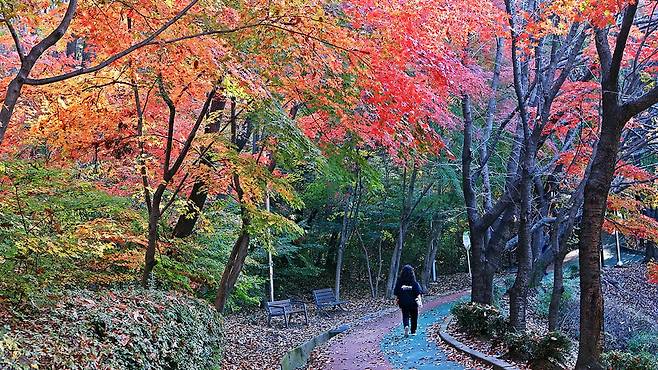 폭포수는 매년 4월 1일부터 10월 31일까지, 오전 9시~오후 6시 가동되며, 가을철 단풍과 함께 어우러질 때 가장 매력적인 풍경을 보여줍니다. 물소리와 단풍빛이 만들어내는 풍경은 도심 한복판에서 만나는 특별한 쉼표가 되어줍니다.