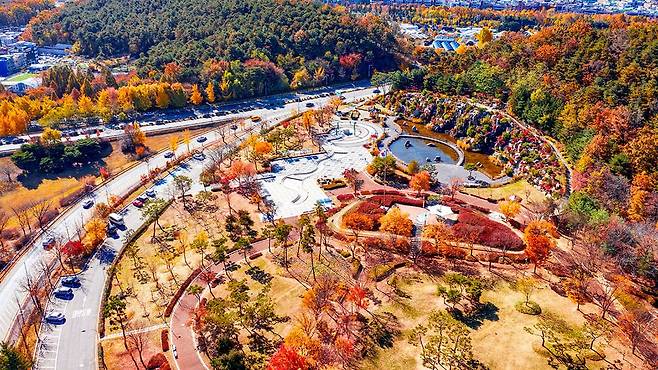 폭포수는 매년 4월 1일부터 10월 31일까지, 오전 9시~오후 6시 가동되며, 가을철 단풍과 함께 어우러질 때 가장 매력적인 풍경을 보여줍니다. 물소리와 단풍빛이 만들어내는 풍경은 도심 한복판에서 만나는 특별한 쉼표가 되어줍니다.