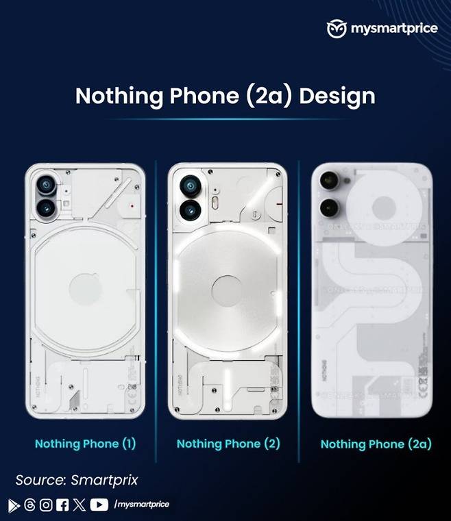 그리고 낫싱폰2a라고 주장하는 렌더링 이미지까지 공개되며 더욱 주목을 받고 있는데요. 새로워진 후면 글리프 인터페이스가 눈에 띄기도 합니다. 기존의 글리프 인터페이스를 그대로 가져와서 재고 떨이하는 것이 아닌 새롭게 디자인하여 만들었다는 점이 색다르기도 했네요.