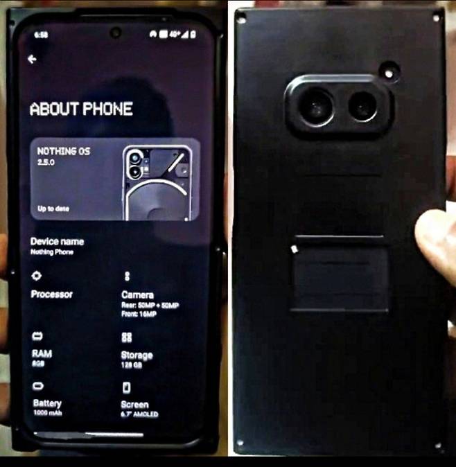 이번에 낫싱폰2a로 보이는 이미지가 유출되면서 일전에 유출되었던 가운데 가로로 카메라 디자인이 적용된 낫싱폰2a 디자인은 속임수를 위한 가짜였음이 확인 되기도 했죠. 그래도 내부 스펙은 낫싱폰2a와 동일한것으로 보아 일부로 만든 가짜 테스트용 기기였음을 알 수 있기도 합니다.