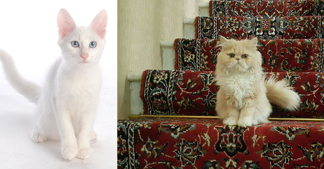 털이 하얀 페르시안 고양이와 터키쉬 앙고라는 털이 긴 장모종인 데다 털색이 하얘서 구분하기 어려워요. 언뜻 보기에 비슷해 보여도, 페르시안 고양이와 터키쉬 앙고라는 체형부터 다르다고 합니다.