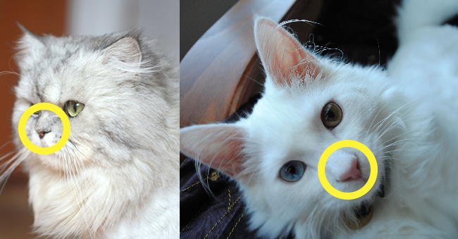 반면에, 터키쉬 앙고라는 마름모나 삼각형에 가까울 정도로 턱 선이 날렵한데다 페르시안 고양이에 비해 코가 큽니다.