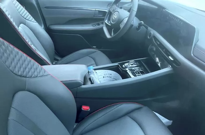 실내에는 계기판과 인포테인먼트가 결합된 대형 디스플레이가 탑재됐으며, 기어는 쏘나타에 장착됐던 버튼식 기어가 적용된 것으로 보인다.