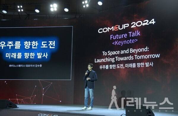 ‘컴업 2024’ 둘째날에 이노스페이스 김수종 대표는 “우주를 향한 도전, 미래를 향한 발사”라는 주제로 발표를 진행했다.