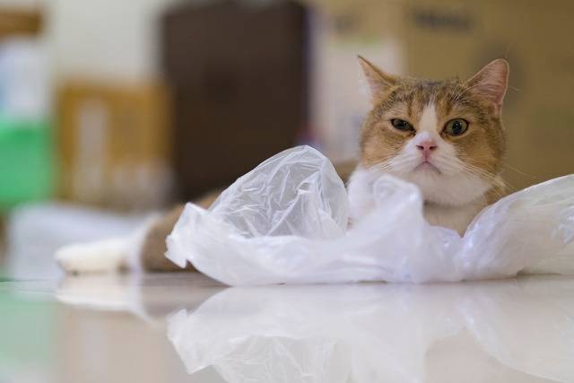 비닐 소재에 관심을 보이는 고양이들이 많다. 보통 집사의 관심을 끌고 싶거나 스트레스를 받았을 때 비닐을 핥거나 씹는 행동을 한다.