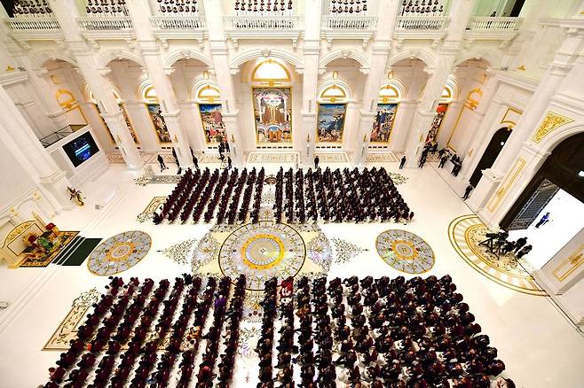 천원궁 뒤편엔 또 하나의 거대한 건물, ‘천정궁’이 있다. 여기는 통일교 본부이자 교단 기업의 중심 역할을 맡고 있으며, 현재 한학자 총재가 실거주하는 곳이라고 알려진다. 더불어 종교적 상징물, 통일교의 박물관까지 겸하고 있는 공간. 이곳을 중심으로 설악면 일대에는 실제 박물관, 학교, 병원, 실버타운 등 각종 부속시설이 나란히 배치돼 하나의 거대한 종교·문화 단지가 완성되어 있는 셈이다.