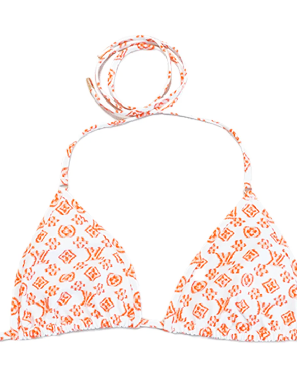 오렌지 컬러의 트렌디한 디자인과 끈 스타일이 조화를 이루며 그녀의 균형 잡힌 몸매를 더욱 강조했다.