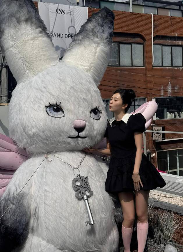 이어진 사진에서 슬기는 커다란 토끼 인형 옆에 서서 포즈를 취하고 있다. 슬기는 발랄한 디자인의 원피스를 완벽하게 소화하며 동화같은 분위기를 물씬 풍겼다.