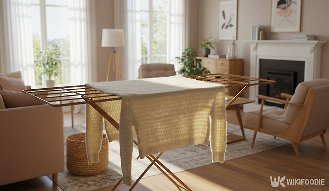 2) 건조할 때는 건조대에 평평하게 널고 니트를 손으로 가볍게 눌러 물기를 제거해야 무게로 인한 변형을 막을 수 있다. 건조기를 사용하면 건조기 열로 인해 니트가 줄어들거나 손상될 위험이 있으므로 가급적 자연 건조가 좋다.