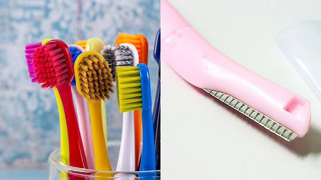 칫솔 : 사용하지 않는 낡은 칫솔의 모 부분을 가위로 절반 정도 자르면 모가 빳빳해져 보풀을 쉽게 정리할 수 있다. 면도기보다 원단 손상이 적어 얇거나 고급 니트에 적합하다.