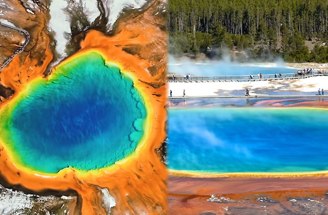 한 번쯤은 봤을지도 모릅니다. 끝없이 펼쳐진 대지 위, 마치 우주에서 내려다본 행성의 눈처럼 푸르스름한 중심과 붉은 테두리를 지닌 사진. 그 빛의 향연이 만들어낸 장면은 자연이 그려낸 가장 화려한 수채화 같죠. 그 장소가 바로, 미국 옐로스톤 국립공원에 자리한 '그랜드 프리즈매틱 온천(Grand Prismatic Spring)'입니다.