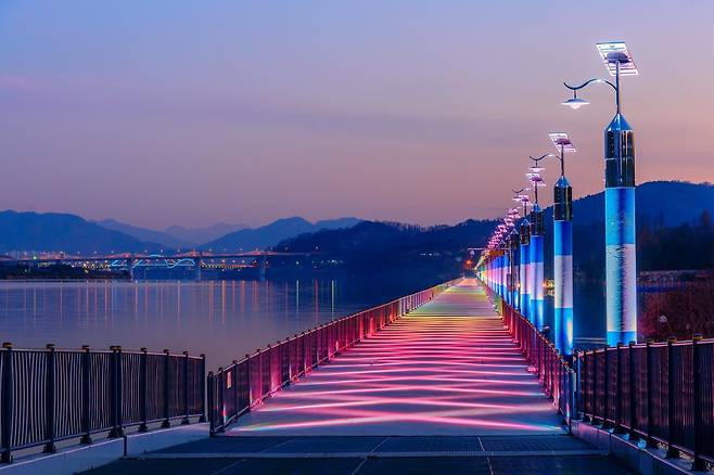 1.4km 길이의 부유식 다리로, 낮에는 조용한 강변의 아늑한 매력을, 밤에는 오색찬란한 조명이 어우러진 로맨틱한 분위기를 선사합니다. 특히, 다리 위를 걸으며 바라보는 탄금호와 주변 풍광은 마치 한 폭의 그림 같은 느낌을 줘요.
