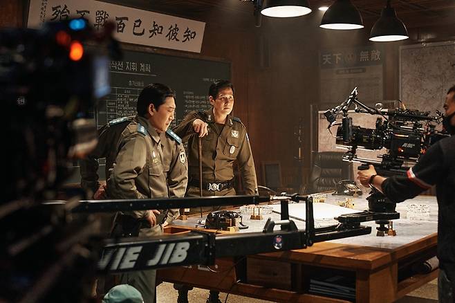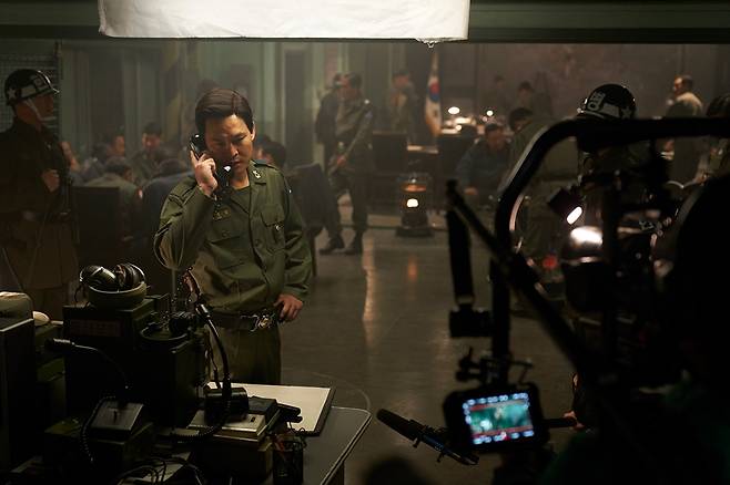 '친구' 전두광을 손을 잡고 군사 반란을 도운 노태건 역의 박해준, 끝까지 반란군에 맞서 군인 정신을 지키려는 헌병감 김준엽 역의 김성균이 촬영에 임한 진지한 모습도 눈길을 끈다.