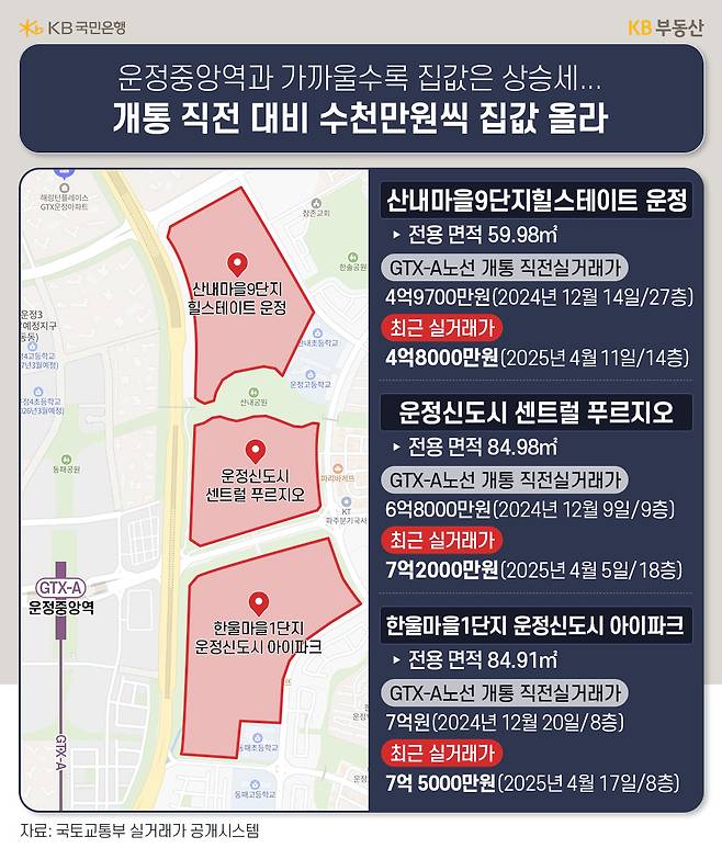 GTX-A노선 운정중앙~서울역 구간이 개통된지 100일이 지났습니다. 국토교통부는 이 구간의 이용객이 석 달 만에 361만7566명(일평균 3만9321명)에 달했다고 밝히기도 했는데요. 가장 수혜지역이라고 꼽혔던 경기도 파주 아파트 집값에는 어떤 변화가 있었을까요?