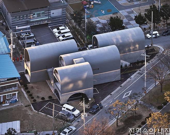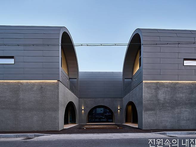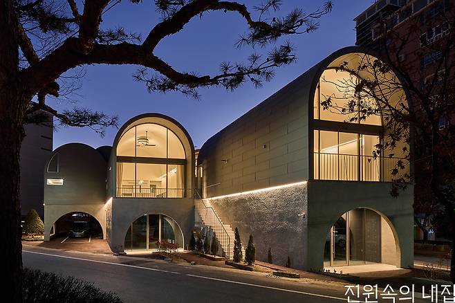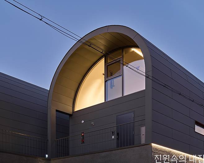 비정형의 땅 위에 나란히 올라선 건물들이 동그란 인사를 건넨다. 가족의 집에 특별함을 더하고 싶었던 건축주의 바람은 우아한 아치 지붕으로 완벽하게 실현되었다.