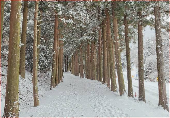 눈내린 지난겨울 대한다원 삼나무 숲길 /출처:온라인 커뮤니티