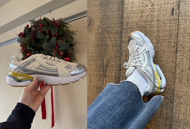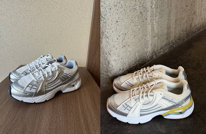 그중에서도 화이트/메탈릭 실버와 스톤/화이트 착용했어요!