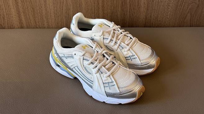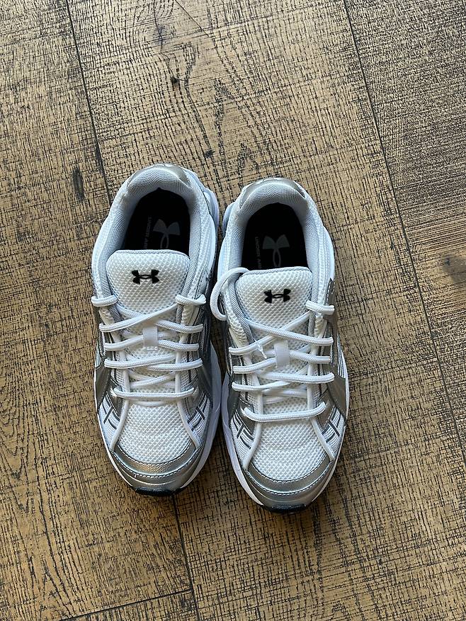 화이트/메탈릭 실버 컬러는 첫인상부터 깨끗하고 시원한 느낌이 강해요. 화이트 베이스에 메탈릭 실버 디테일이 더해져 스포티한 무드가 비교적 또렷하게 드러나고, 운동화 특유의 러닝 감성이 잘 살아 있어요