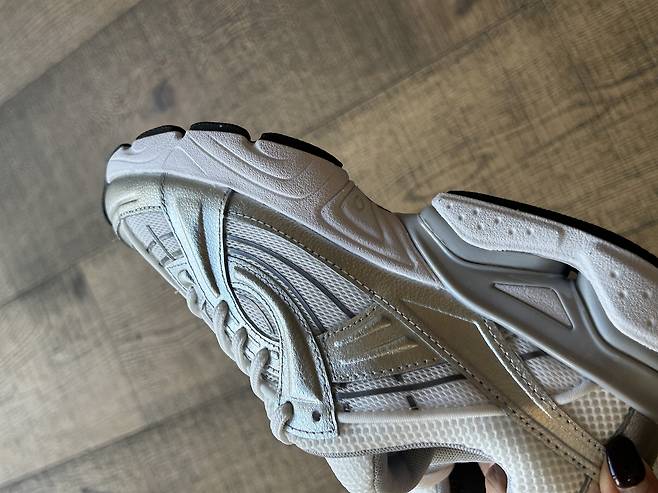 레트로 러닝화에서 영감을 받은 TPU 힐 케이지와 연골 포드 구조가 뒤꿈치를 잘 잡아줘 오래 걸어도 흔들림이 적었어요.