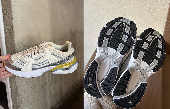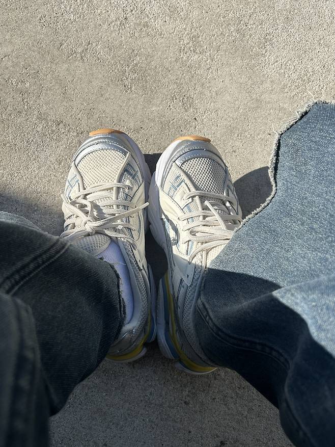 쿠션감 역시 데일리로 신기 좋은 정도였습니다. EVA 미드솔이 가볍고 편안한 착용감을 전달해 하루 종일 신어도 발바닥 피로가 크게 느껴지지 않았고, 100% 고무 아웃솔 덕분에 접지력과 안정감도 충분했어요.