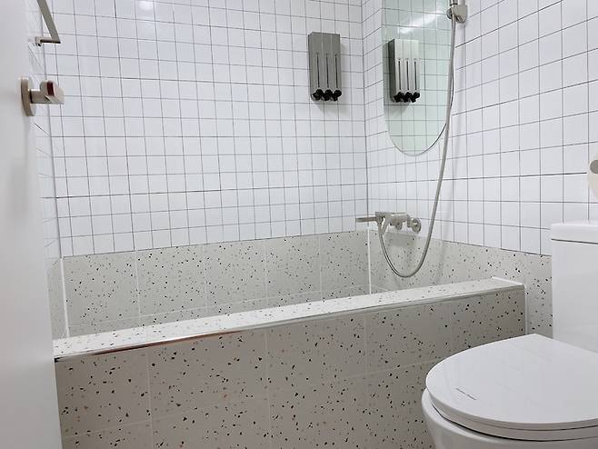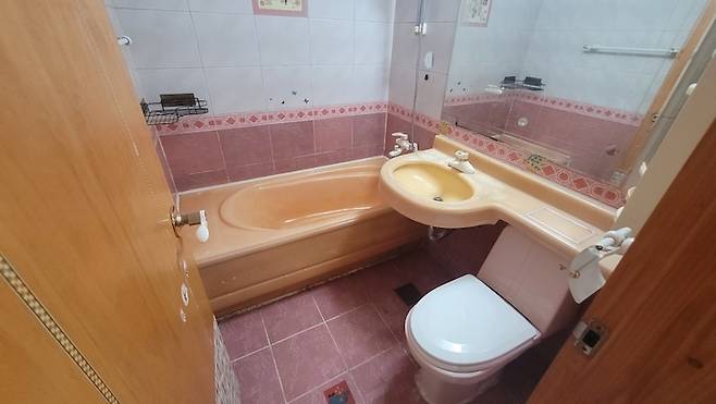 욕실은 조적 욕조 시공, 세면대는 외부 시공