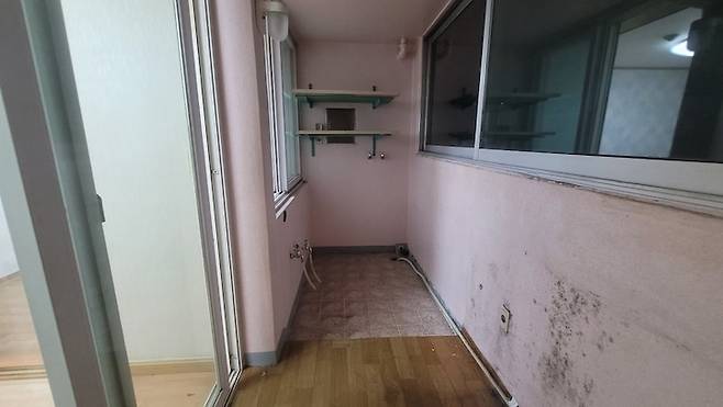 뒷베란다는 곰팡이가 있었어요. 같은 위치에 수납장이 있었어서, 그럴 수도 있다고 하더라고요.
