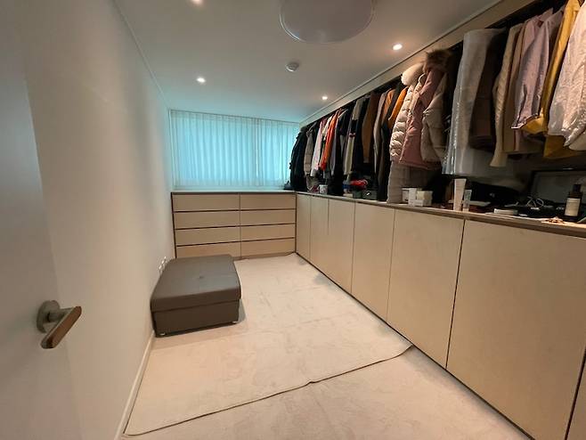 중간방(드레스 룸)은 수납을 위하여 자작나무 맞춤 장, 베란다 확장, 보일러 시공