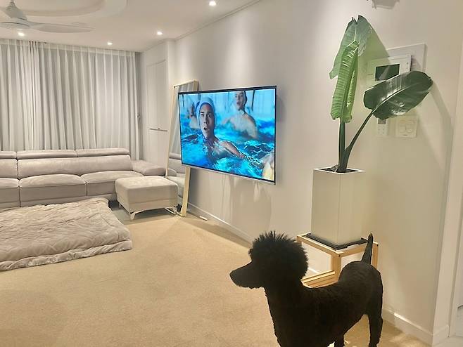 긴 형태의 거실이라 사용하기 너무 재밌네요.