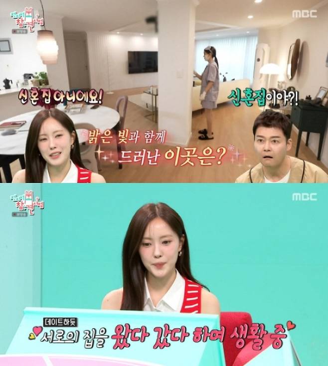 결혼 2개월 차인 효민은 "아직 신혼집이 없어서 서로의 집을 왔다 갔다 한다. 바로 옆집에 산다"고 밝혔습니다. 신혼집 인테리어가 늦어져 곧 이사할 예정이라고 강조했죠.