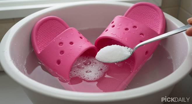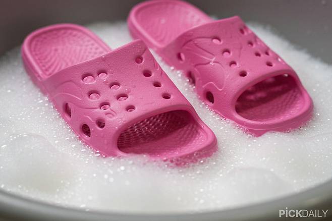 곰팡이가 낀 슬리퍼를 가장 손쉽게 세척하는 방법은 과탄산소다를 활용하는 것이다. 따뜻한 물에 과탄산소다를 섞어준 뒤 슬리퍼를 30분 정도 담가두면 된다. 과탄산소다는 물에 닿으면 산소 거품을 발생시키는데, 이 산소가 곰팡이와 얼룩 속 유기물을 분해해 표면을 깨끗하게 만든다. 락스보단 자극이 적으면서도 표백 효과가 있어 흰색 슬리퍼라면 표백 효과도 노릴 수 있다. 담근 뒤에는 흐르는 물로 충분히 헹궈 잔여물이 남지 않도록 해야 안전하다.